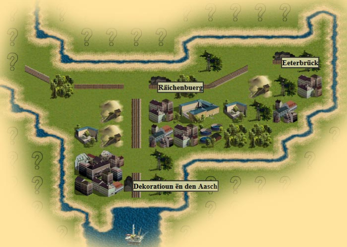Dieses Bild zeigt den Zustand mit neutralen Schienen. Durch das Schienen bauen können sich die Schienen-Verbindungen im Land Zwergzienien verändern (oder bereits verändert haben).